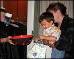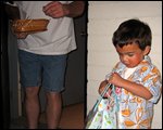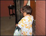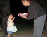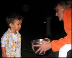 determinedly clutching his candy bag, repeating “trick-or-treat” as we