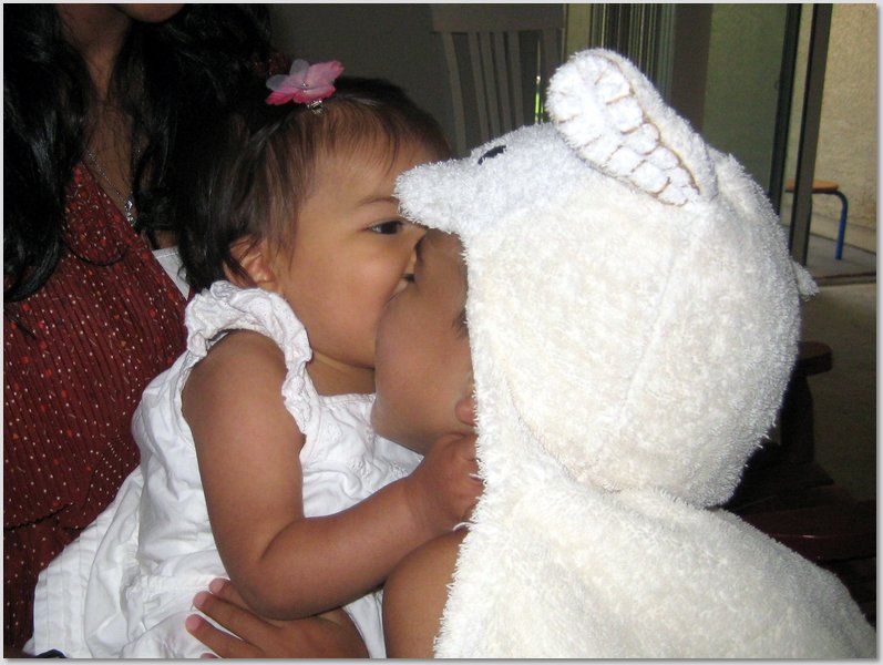 Caitlin giving her big brother a birthday kiss (or maybe it's a birthday bite.)