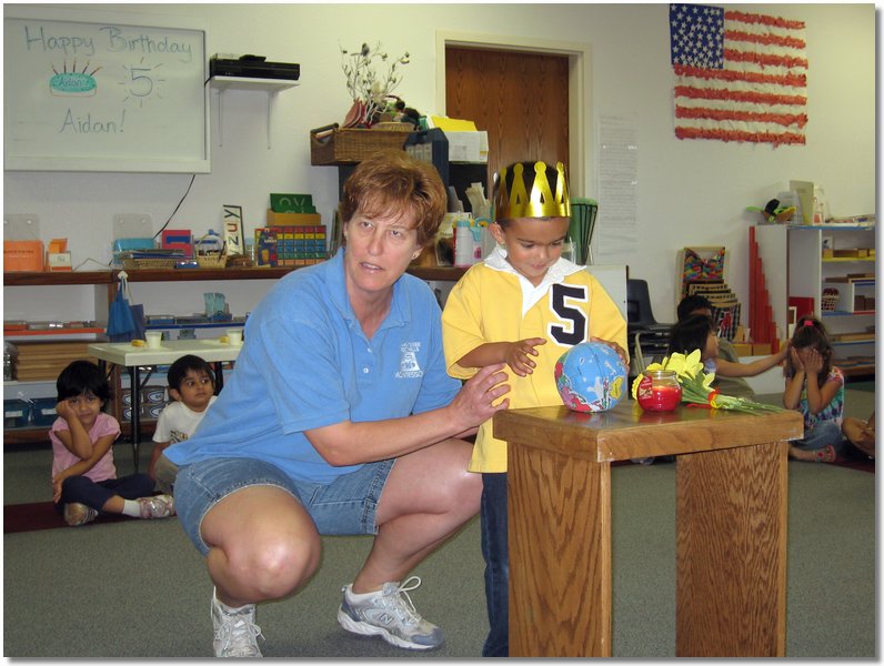 Celebrating his b'day at the montessori with his teacher Ms. Julia