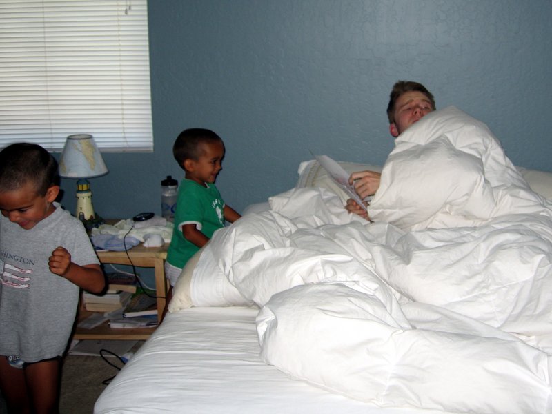 Aidan's excited about the hoop-la, Mark gives his picture to daddy, and William wants to go back to bed