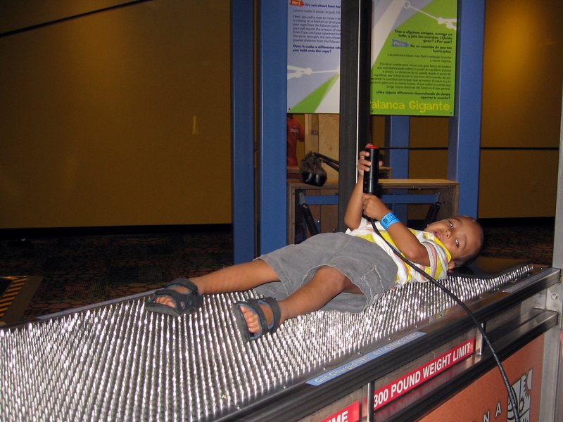 Mark tries out the bed of nails.