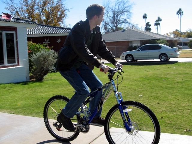 Enjoying the early afternoon sunshine on his gift from Mom.