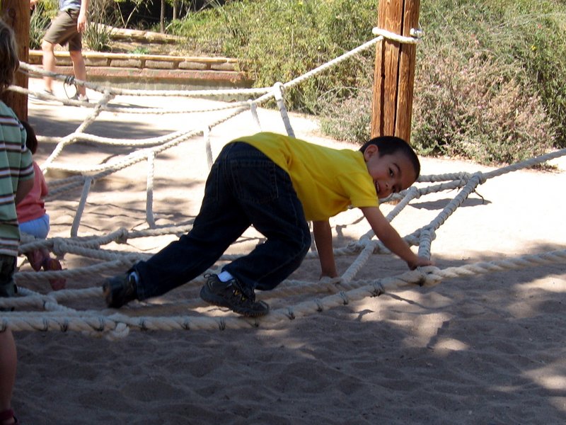 Aidan climbing the spider web.