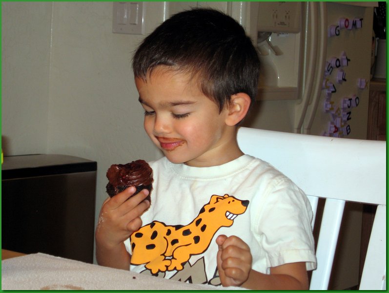 Aidan sports a chocolate mustache...