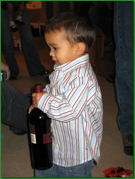 A bottle of wine is just the thing Mark needs to wind down after a hard night of partying.