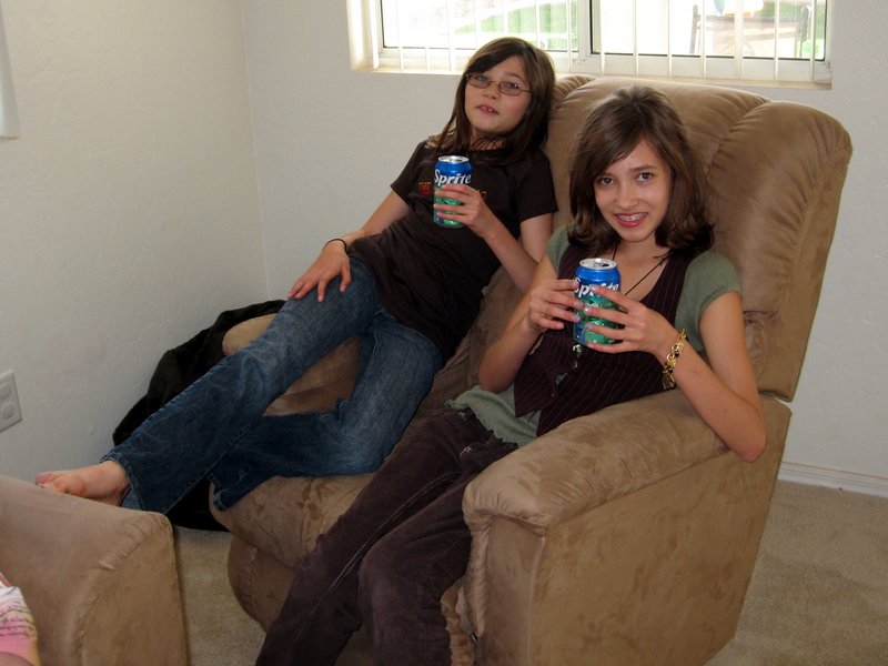 Carly and Hailey enjoying their Sprites.