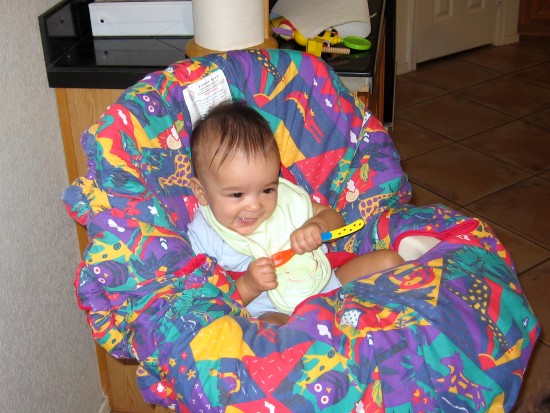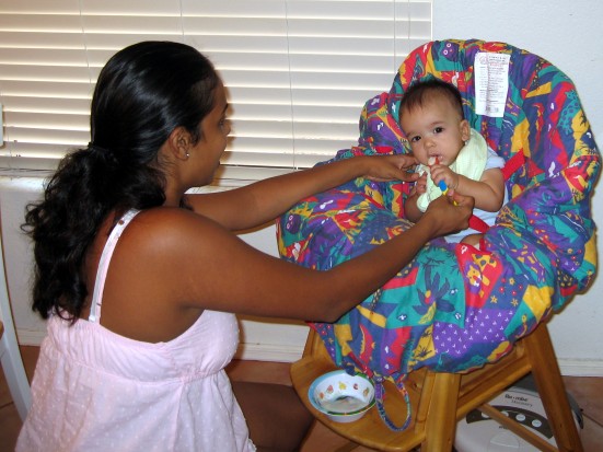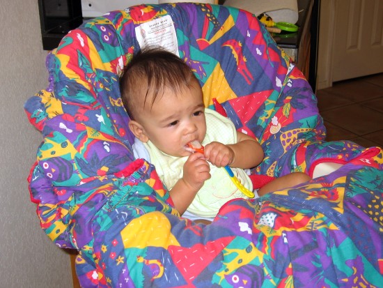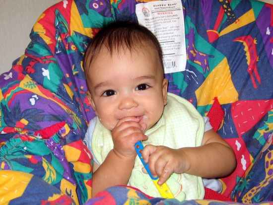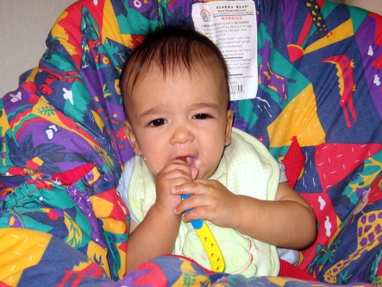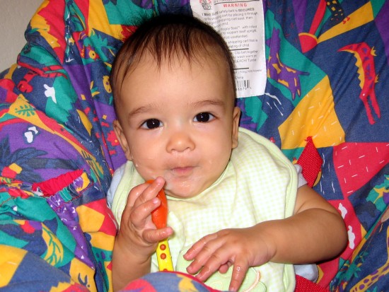got his first taste of solid food on his six month birthday (July 22,